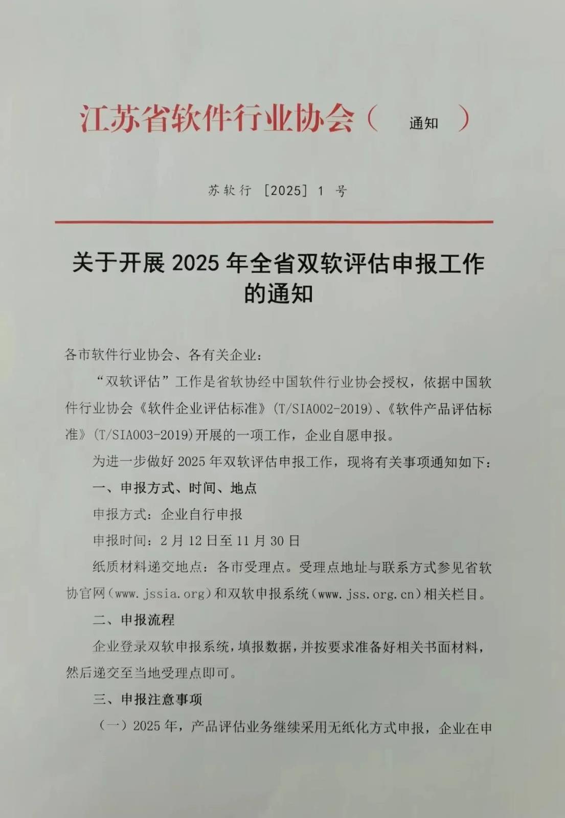 为进一步做好2025年双软评估申报工作,现将有关事项通知如下: